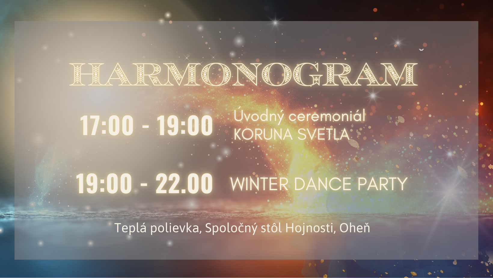 "Zažime spolu tanečný večer, ktorý nie je len o hudbe a tanci, ale aj o spojení – s prírodou, so sebou samými a s ostatnými . Budeme spolu v pohybe, cítiť silu prírody a oslavovať nový začiatok, ktorý prináša zimný slnovrat."