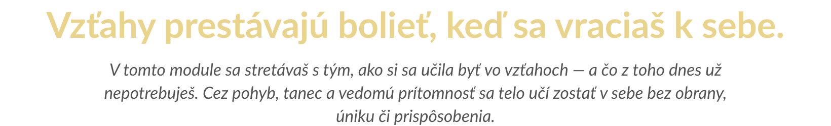 Kúpou tohto modulu si rezervujete miesto v tanečnej skupine. Aktuálne sa modul č.2 otvára v meste Banská Bystrica. Dielne prebiehajú formou pravidelných stretnutí 1x do týždňa. Spoločne nás čaká 25 stretnutí a z toho 5 prechodových ceremónií, ktoré zakončujú jednotlivé tematické cykly. Začíname od 17 .3.2026 v NIYAMA HEALING STUDIO (Horná 14) - každý utorok (90 min). PLATBA: Platbu môžete uhradiť v plnej výške alebo je možné rozdeliť ju na 4 časti. Zaplatíte zálohu v hodnote 90€ a zvyšné sumy zaplatíte podľa určených splátok po dohode s lektorom . Storno podmienky: 50% storno 3 dni pred začiatkom kurzu, v prípade náhradníčky 0% storno počas kurzu 100% storno ( závažné dôvody sú riešené individuálne) VIAC O MODULE TU ! Rozpis termínov: 17./24./31. marec 2026, 7./14./21./28. apríl 2026, 5./12./19./26. máj 2026, 2./9./16./23.jún 2026 16.máj 2026 - SOBOTA (cca. 9:00 - 18:00)
